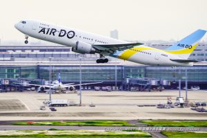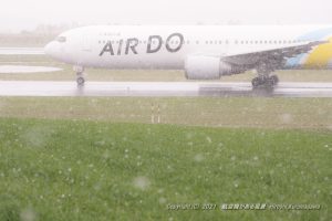 南風運用の夕刻、エアドゥのB767がラインアップ 日没の時刻に旭川に降り立つHD87だった 眠い天気だったのでシャッタースピードを1/250にセットして動きをつける 月食にも絡んでくれるだろうと思いながら見送った