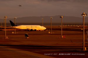 これは貨物機だ! と言わんばかりに「Cargo」と明記して飛んでいる 陽が沈んだいいタイミングで稜線を越えてくれた 鼻孔の大きさからトルクを感じる