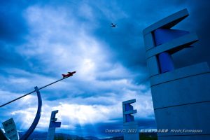 天高い夏 2021-08-11 最終更新日時 : 2021-08-11 高層雲の下、手が届きそうなところを黒い雲が流れた すっかり定番になった黄色いB777が出発 24mmで一杯いっぱいまで引いて太陽を取り込む 心地よい風が吹く立秋前日の絵