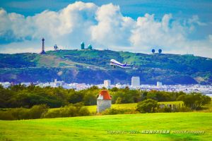 牧草地とレーダー群をまとめてフレーミング あの高台には自衛隊のレーダーや民間の送信所、中継局もあった アンテナのあるところは絶景が望める場所 併設されている稚内公園の眺望は素晴らしい