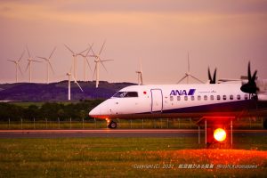 空港の南側にも風車があった 前からあったのだろうか、気が付かなかった 最終便である千歳行きがタキシング この機体がちょうどいい大きさだ