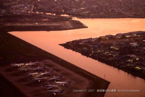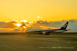今年は羽田からANAが飛んだ それも夕刻のいい時間に飛んでいた 季節が進むと出発時刻はもう日没後 そんな光の下、淡く印象的な絵を残せた