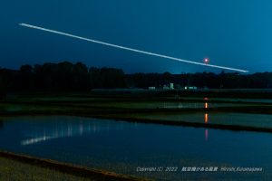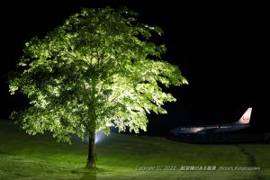 夜便の撮影をあきらめて東神楽の「森のゆ」でさっぱりした そこから帰る途中、最終便のテイクオフが無線機から聞こえてきた 道端に車を止めるも周囲は真っ暗で状況がわからない 音を頼りにフレーミングしてシャッターを開けてみた