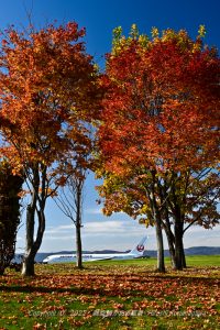 落ち葉と紅葉に惚れて試行錯誤 青空も重要なので縦構図に設定 中途半端な結果だが現場での思い入れは深かった 来年は更に磨きをかけたい 2022/10/27 JL552