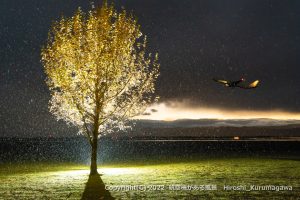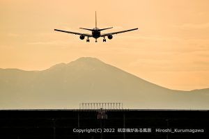 午前中に北側からアプローチする便 オプタテシケ山などを絡めるには機体の右側に立つ必要がある しかし光線の具合からシンメトリーな場所に立ってみた 進入灯を一列に並べるには半歩刻みの調整が必要だ 2022/10/28 JL5 […]