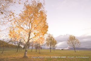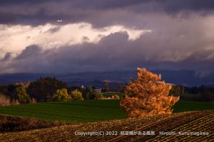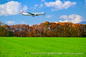 カラマツとプラスαを探して右往左往 緑の畑が気に入った しかし、雲の影が目の前を覆い始める 正にその時に限って・・・ギリギリセーフの一枚 2022/11/2 JL551