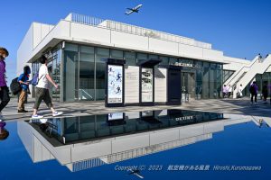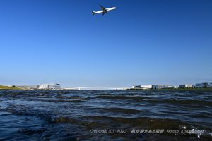15時あたりから南風に変わる予報 これは新ルートでの運用になると期待して天空橋に向かった アプリを見れば到着機が新ルートに向かい始めている 澄んだ空にストライプのビルが映えていた