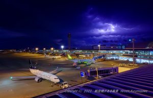 熊本からNH648で羽田に向かっていた 静岡辺りから雷雲の閃光が目に入ってきた RWY22で降りてタキシングの最中もそれは続く 結構な振動に耐えながらひたすら連写