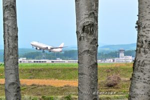 美瑛でチョー有名な観光地 丘の上に並ぶ白樺だ その一部を贅沢に利用してみた 向こうの丘にはまだロールが転がっている