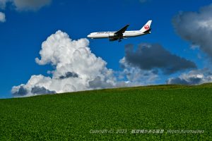 熊本をRWY07で発ったHN648 いつもより大回りのレフトターンで高度を上げていた 雲を避けているのかと思ったが、下に到着機が飛んでいる 後続の羽田行きJALもスポットから出てきたところ