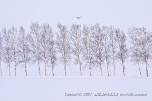 海外からの観光客で賑やかな美瑛の一角 南風の日に離陸機を絡める構想 何度か撮影しているがなかなか手強い ここまでガツンと上がってくれれば御の字
