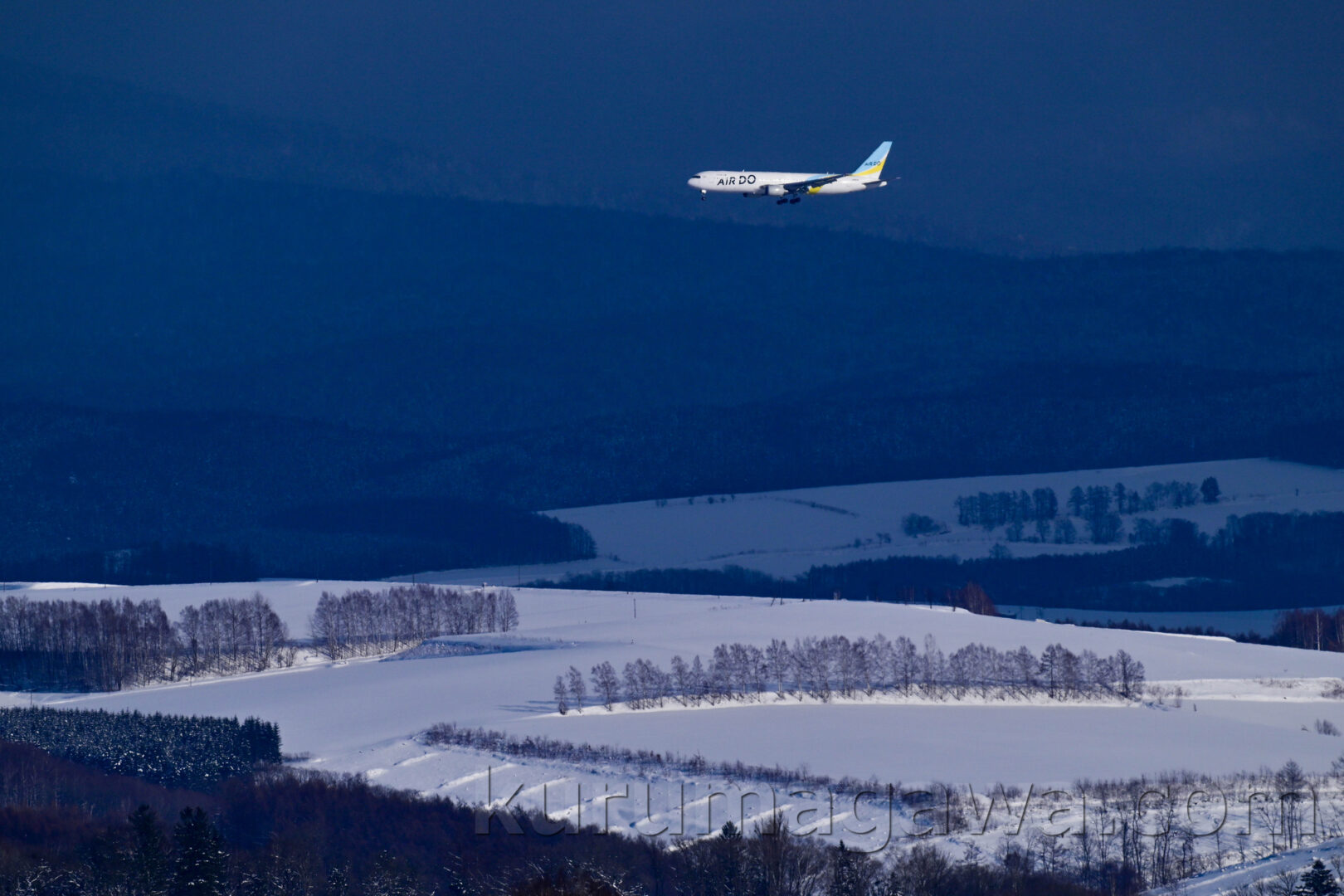 撮影機材には高解像度機と超望遠レンズで遠景の機体を確実に捉えつつ、山と雪原を圧縮して配置している。600mmクラスならではの空間の凝縮感が、実際以上の標高差とスケールを感じさせる。吹雪後の不安定な光量の中でも、シャッタースピードとISOを的確に管理し、階調と解像感を両立させた点が、緊張感ある一枚を成立させている。