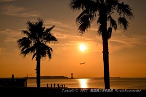 久しぶりにりんくうビーチに車を向けた 暖冬のせいかこの季節にしては賑わっている そしてこの便を最後に南風運用に変わった 駐車場の生産に電子マネー等が使えるようになったのがうれしい