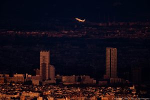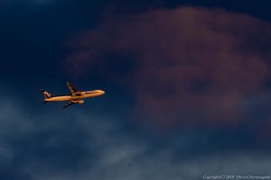 伊丹のRWY32から離陸して左旋回 翼の裏側に光を当てるかのようにバンクをかけてくれる 背景の雲を選びながらシャッターをきる この便が去ると共にショーが終わった