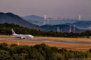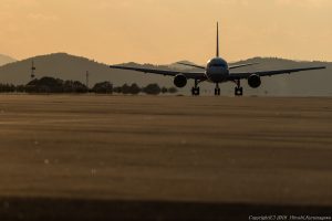 日本海側には、夕陽の美しさを唄う場所が多い そろそろ進入灯の向こうに陽が沈んでいるころだろうか 日本海に沈む夕陽を絡められる空港と言えば新潟 しかしここ鳥取もかなり劇的だ Nikon D850 24-70mm