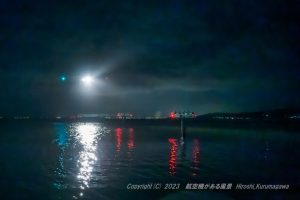 羽田から向かった先は鳥取砂丘コナン空港 随分揺れながら到着した現地は風雨が強烈だった 真っ暗な展望台に立って初めて気がつた、2機もいることに 昼便にトラブルがあったようだ