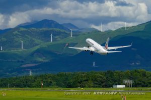 建て替え中のターミナルも来春には開業するという熊本空港 未だ震災の影響が見え隠れする 俵山の風車も羽根が揃っていない 2022年夏を回想