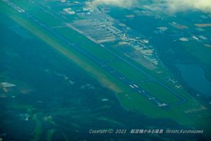 熊本をRWY07で発ったHN648 いつもより大回りのレフトターンで高度を上げていた 雲を避けているのかと思ったが、下に到着機が飛んでいる 後続の羽田行きJALもスポットから出てきたところ