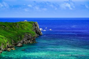 伊良部島の北端にある白鳥崎 足元のエメラルドグリーンを取り込むために当然PLフィルタを使う 岬の周辺は釣りのスポットなのか白い船が集っている しかし・・・・思ったより遠かった